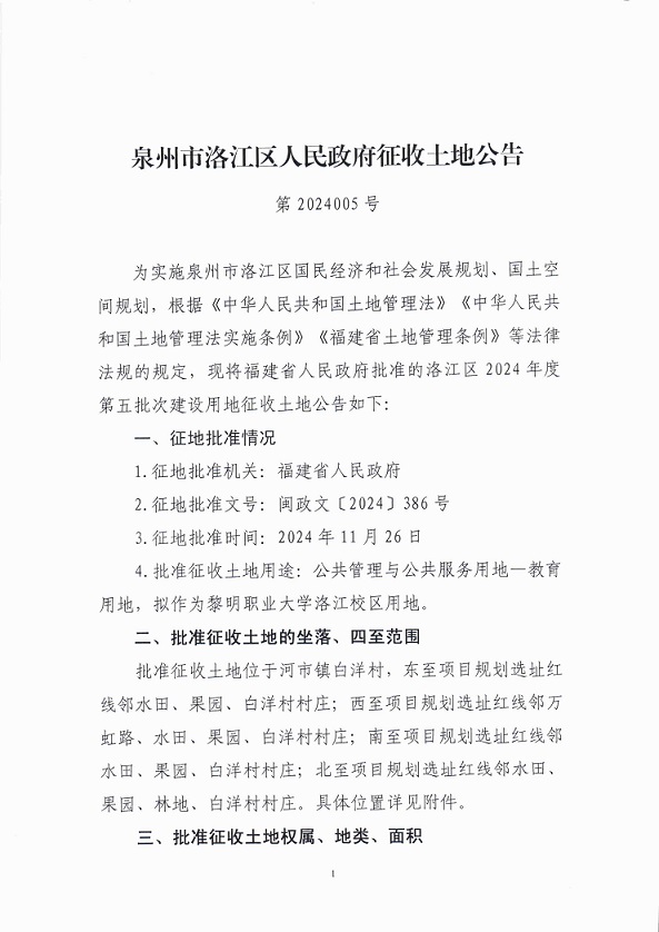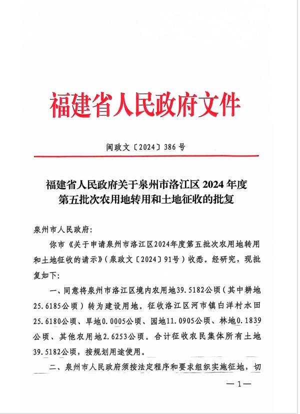 洛江區(qū)2024年度第五批次農(nóng)用地轉(zhuǎn)用和土地征收的批復(fù)及征收土地公告